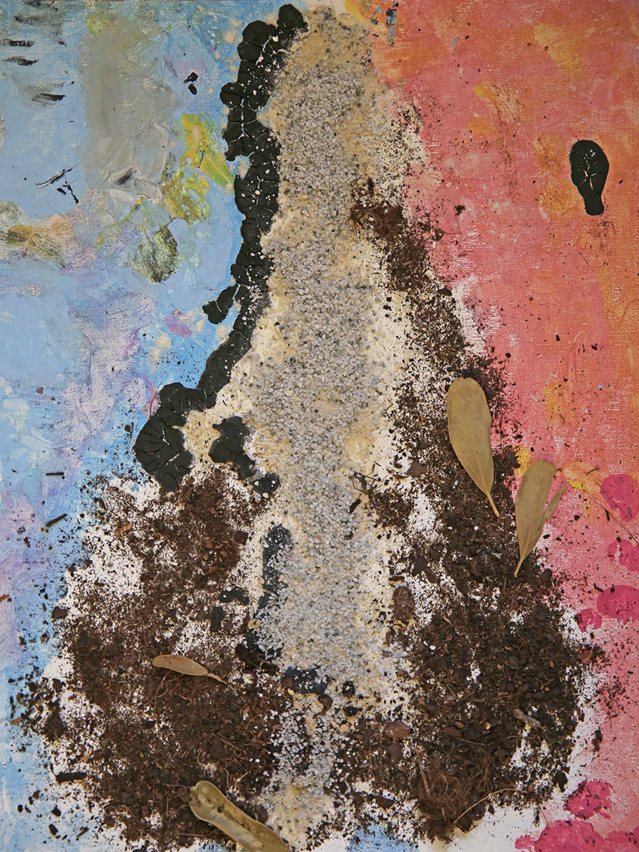 Acrílico, materiales orgánicos sobre tabla